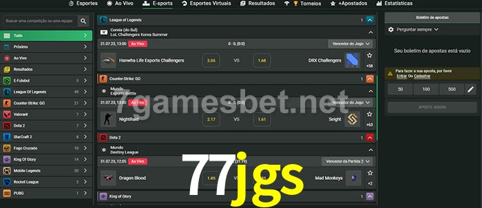 O 77jgs oferece uma grande seleção de opções de apostas em e-sports com probabilidades competitivas